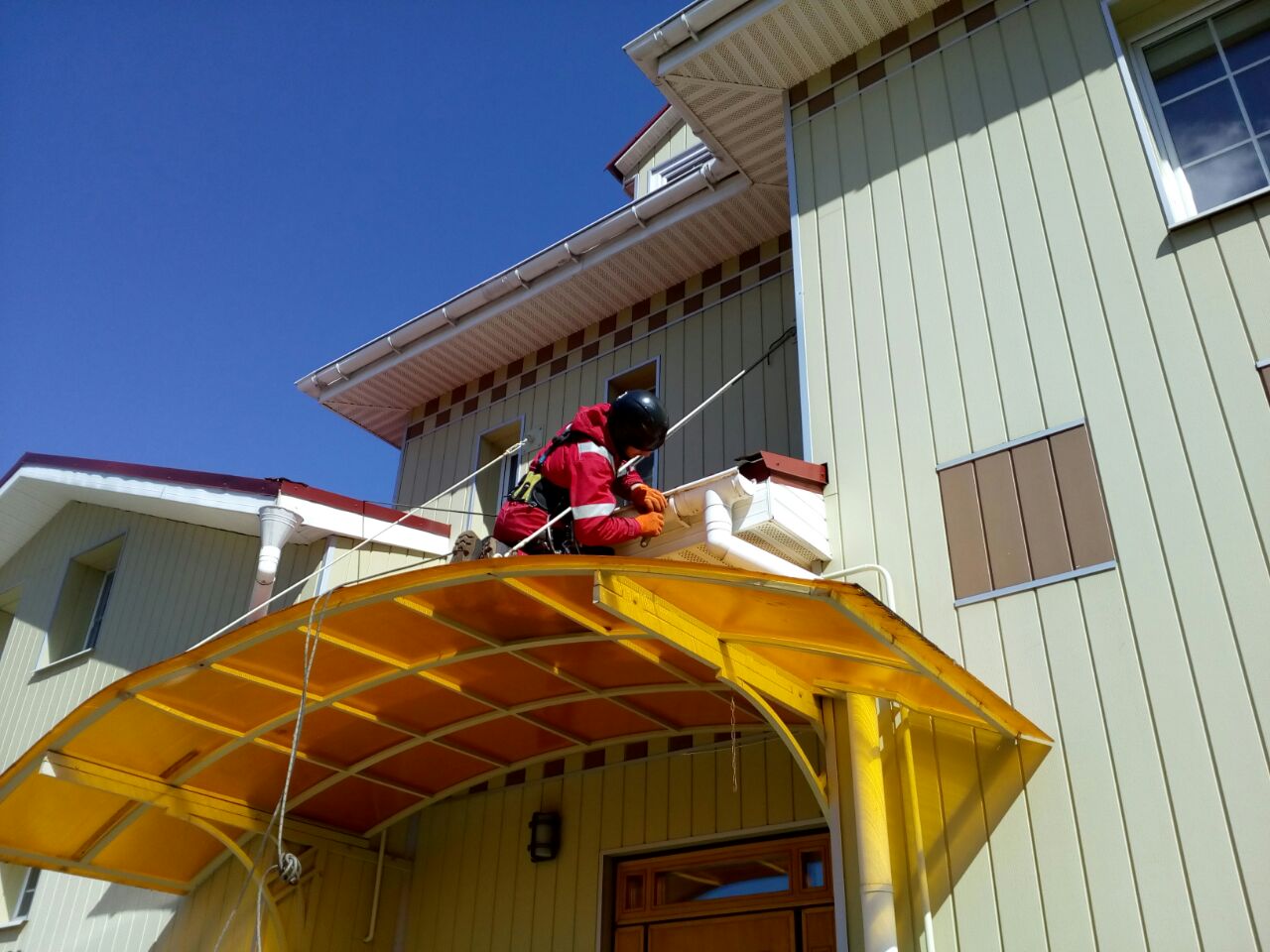 Работы выполняются со всеми требованиями. Монтируем под углом в несколько градусов, чтобы вода не застаивалась в желобах.
